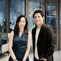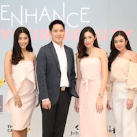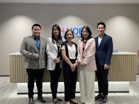 three asian men and women posing for a photo